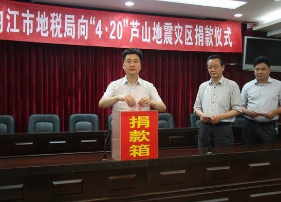 4月23日上午,内江市地税局组织机关及直属单位全体干部职工(含离退休人员)143人向“4.20”芦山地震灾区捐款,全体干部职工慷慨解囊为灾区群众献上自己的一份爱心。部分在外出差、学习的干部职工、离退休老同志还专门委托同事到现场为灾区献上爱心。据统计,共收到捐款22550元。
