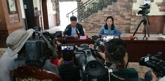 阿坝州常委、常务副州长徐芝文和阿坝州常委、宣传部长杨星在新闻发布会上。
