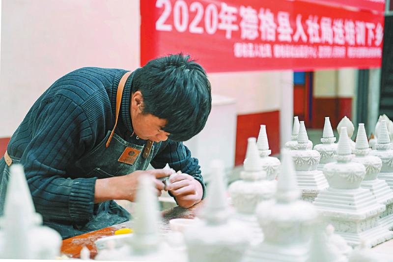 近年来,德格县通过政策扶持,采取“五个加”模式,在麦宿建起19处民族手工艺扶贫车间,让农牧民成为手工艺人,从而摆脱贫困。从民间小作坊向扶贫“大车间”转化,德格县持续书写独特文化扶贫经。