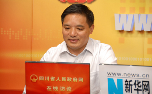 泽波接受四川省人民政府网站专访并与网友在线交流。图为泽波认真浏览网友提问。