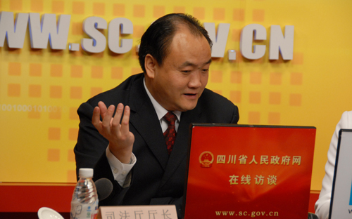 司法厅厅长李仲彬接受四川省人民政府网站专访并与网友在线交流。图为李仲彬回答网友问题。