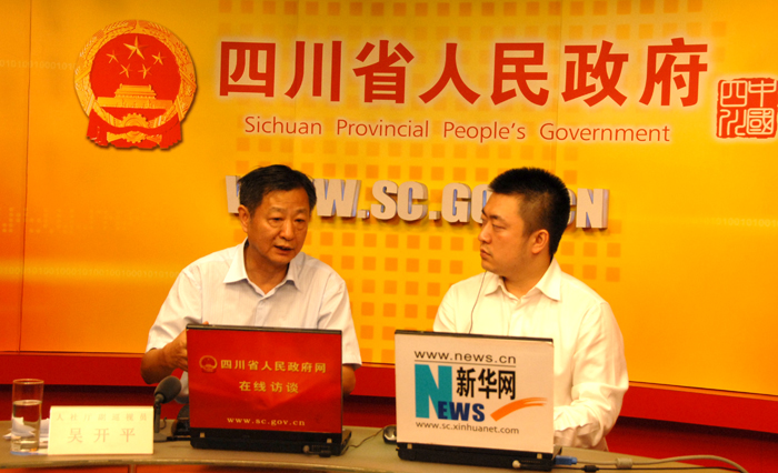人力资源社会保障厅副巡视员吴开平同志接受四川省人民政府网站专访并与网友在线交流。图为吴开平与主持人进行交流。