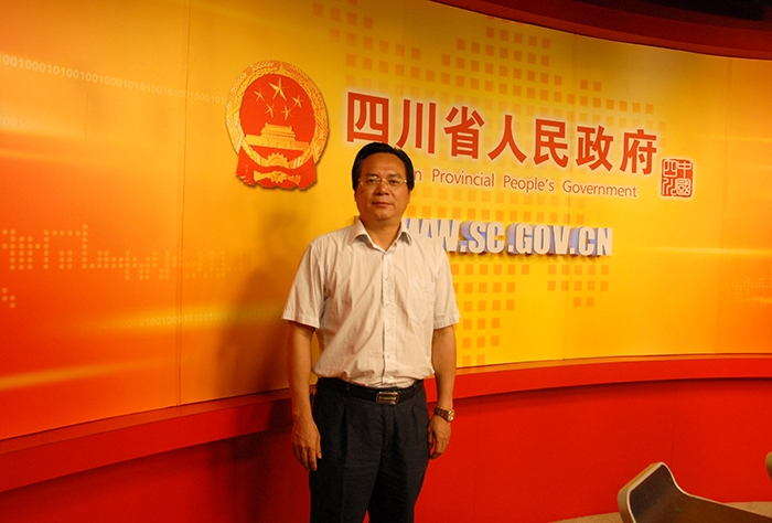 交通运输厅公路局总工程师梁正钦同志接受四川省人民政府网站专访并与网友在线交流。图为梁正钦参观省政府网站。
