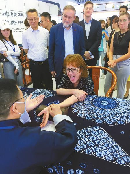 在三台县的活动中,领事官员先后走进麦冬博物馆麦冬规范化种植基地、太极集团绵阳制药有限公司,实地了解绵阳中医药产业发展情况,体验特色诊疗服务。中医药大健康产品、中药香囊、茶饮品鉴、中医非药物疗法体验……领事官员对每个环节都表现出浓厚的兴趣。“中医很不错。”在体验了中医号脉和按摩后,奥地利驻成都总领事馆商务领事穆娥连连点赞。潘立文说,中药是一个巨大的宝藏,在抗击新冠肺炎疫情中发挥了很大作用,以色列和四川应该携手共进,在医疗健康、应急管理、数字医疗等领域开展合作。