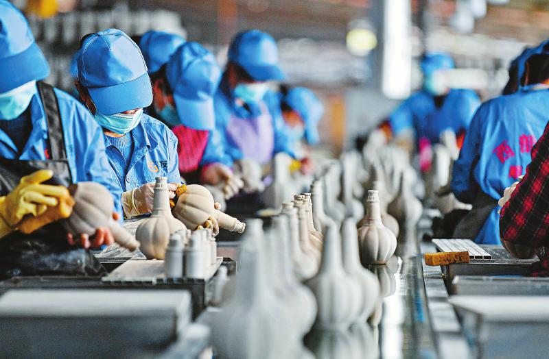 3月18日,自贡市荣县一家陶业工厂内,新进厂的农民工上岗工作。记者 何海洋 摄