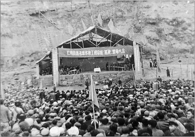 1971年4月18日,黑龙滩水库大坝施工现场,指挥部召开万人大会,热烈欢迎了水利新战士王光普和王淑先的加入。