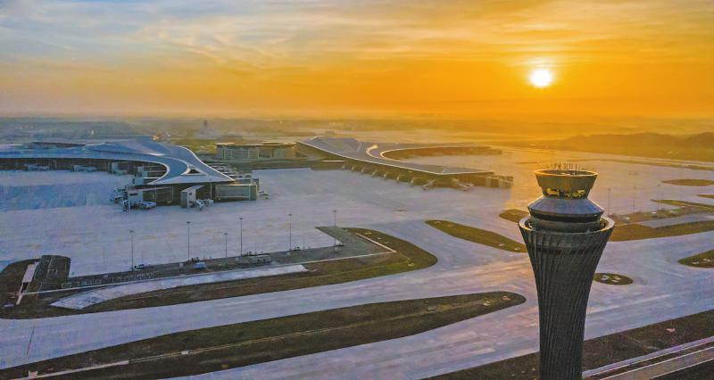 6月5日,晨曦下的成都天府国际机场。记者 吴聃 摄