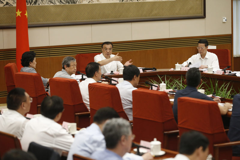 7月11日,中共中央政治局常委、国务院总理李克强主持召开座谈会,就科学研判经济形势、做好经济工作听取专家和企业家的看法建议。