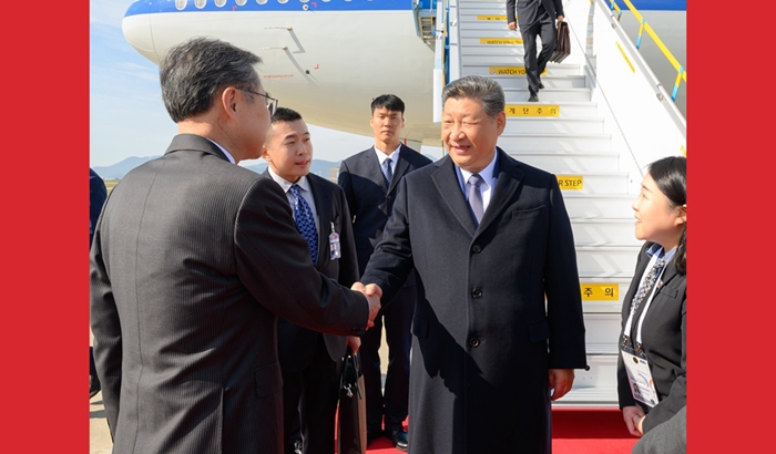 习近平抵达韩国出席亚太经合组织第三十二次领导人非正式会议并对韩国进行国事访问
