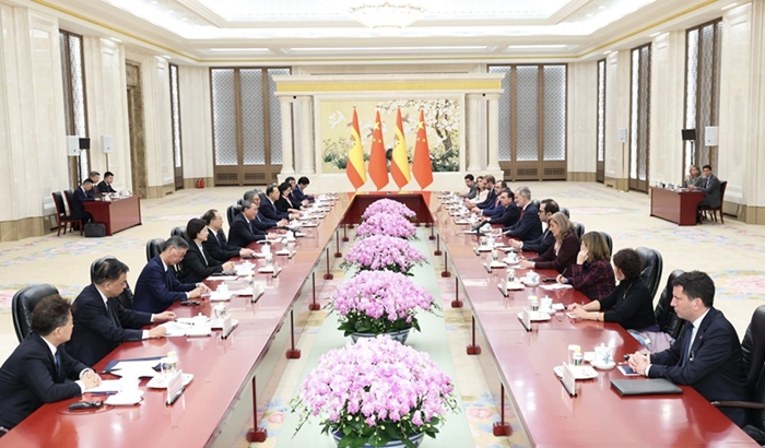 李强表示,中国和西班牙建交以来,始终相互尊重、平等相待,双边关系健康稳定发展,各领域合作取得丰硕成果。今天上午,习近平主席同国王陛下举行会晤,就重大战略性问题深入交换意见。中方愿同西班牙进一步弘扬传统友谊,坚定支持彼此核心利益和重大关切,巩固政治互信,深化互利合作,不断增进两国人民福祉。