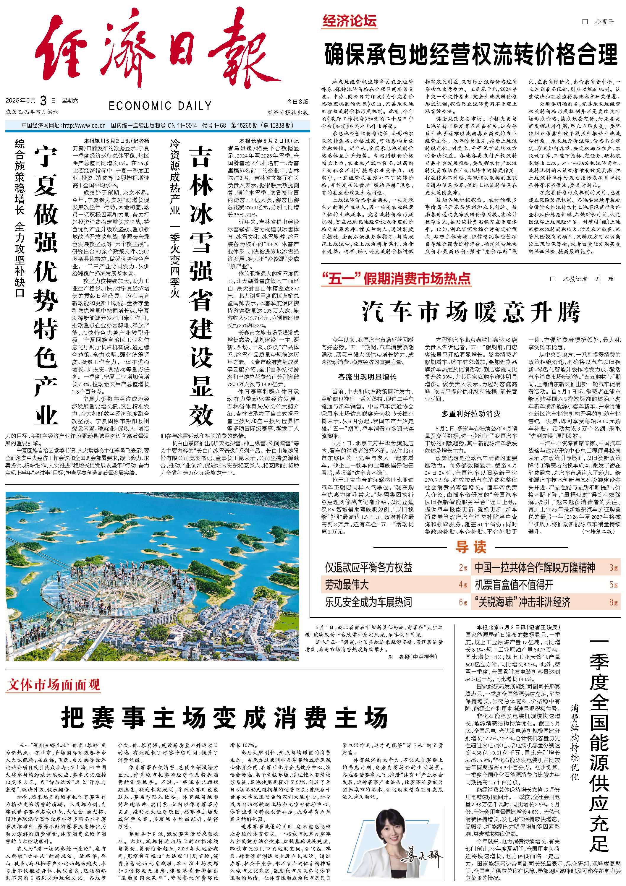 体育经济的生命力,不仅来自赛场上的高光时刻,也来自赛场外的生活场景。各地要借赛事人气,推进“体育+”产业融合发展,延伸赛事产业链条,让赛事流量成为滋养城市的活水,让运动激情为经济发展注入持久动能。