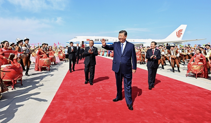 习近平率中央代表团抵达乌鲁木齐出席新疆维吾尔自治区成立70周年庆祝活动