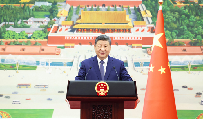 习近平指出,今天的世界,百年变局加速演进,国际形势变乱交织,全球性挑战更加突出。分裂对抗、零和博弈注定没有出路,让世界重回丛林法则不得人心,同球共济、团结合作才是唯一正确选择。我提出全球治理倡议,旨在推动构建更加公正合理的全球治理体系。中国将始终站在历史正确一边,以人民之心为心、以天下之利为利,同各国一道推动构建人类命运共同体。