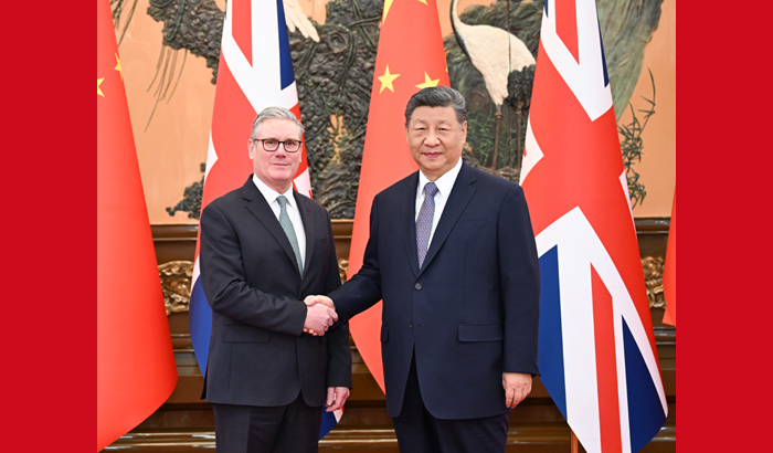 1月29日上午,国家主席习近平在北京人民大会堂会见来华进行正式访问的英国首相斯塔默。双方同意中英要发展长期稳定的全面战略伙伴关系。