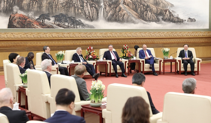 2月13日下午,在农历新春佳节即将到来之际,国务院总理李强在北京人民大会堂与获得2025年度中国政府友谊奖和在华工作的外国专家代表座谈交流。国务院副总理丁薛祥出席。新华社记者 黄敬文 摄