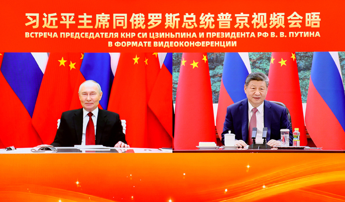 2月4日下午,国家主席习近平在北京人民大会堂同俄罗斯总统普京举行视频会晤。