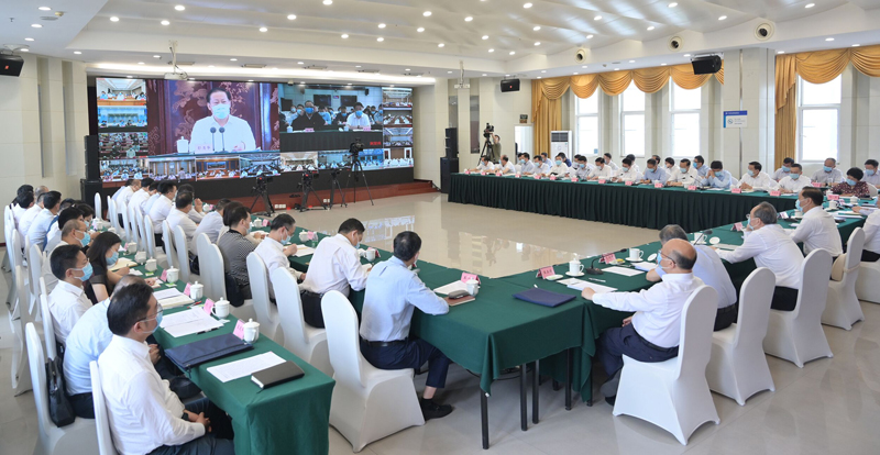 会议以电视电话会议形式开至市一级。省委应对疫情工作领导小组成员,省应急指挥部副指挥长和有关省领导,省直有关部门(单位)和部分中央驻川机构、企事业单位负责同志等参加调研或主会场会议。 (记者 张守帅 摄影 欧阳杰)