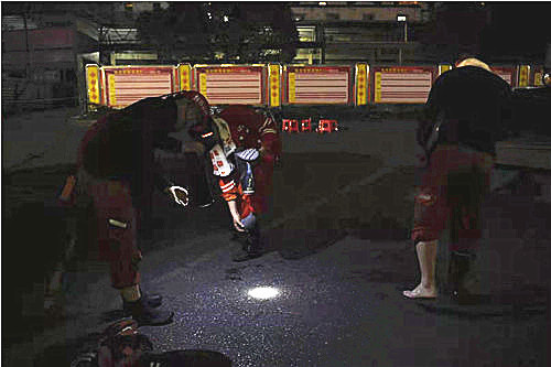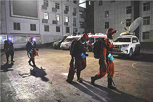 凌晨一点半左右,一队救援人员从矿井上到地面。记者看到,有些救援人员的衣服都被浸透了。“这是汗水打湿的,井内温度大概28摄氏度,湿度很大。”其中一名救援人员告诉记者,主巷道在继续在排水,他们这组救援队伍从另外一个下井的巷道去侦察,看有没有其他可以通行的“生命通道”。“我们走到大约1500米的地方,就发现水封硐了,无法再前进,就上来了。接下来,将有蛙人来接力,通过潜水继续侦察,看能否确定被困人员位置,并打通新的救援通道。”该救援人员说。