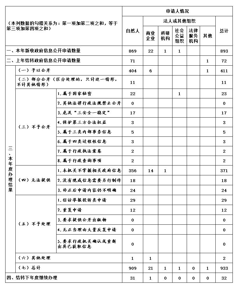 三、收到和处理政府信息公开申请情况