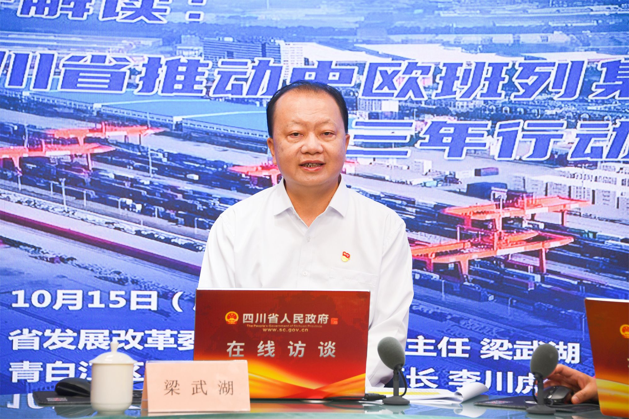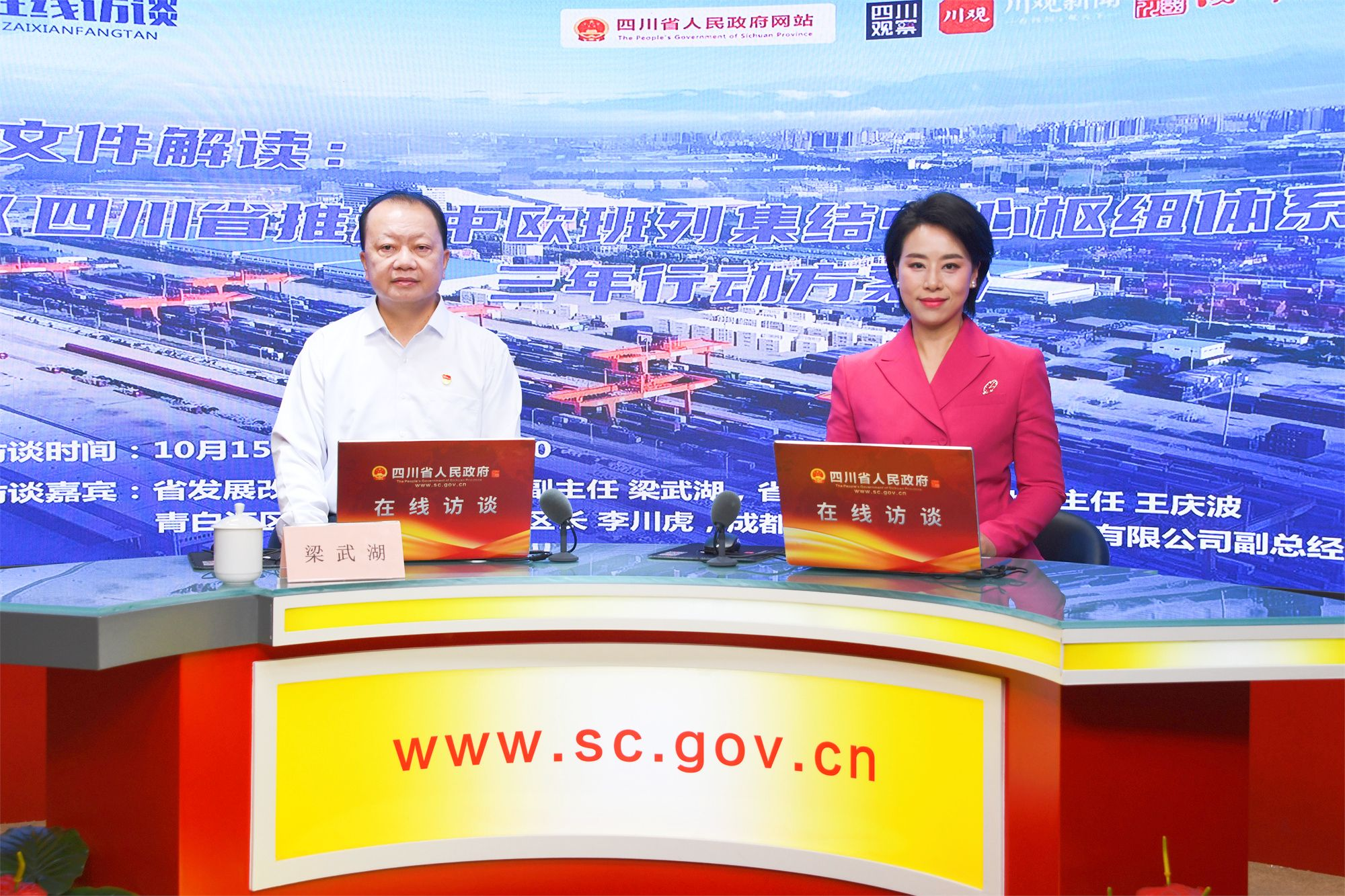 中欧班列应中欧投资贸易的稳步发展而产生,随共建“一带一路”的不断深入而壮大,已成为共建“一带一路”的旗舰项目和标志性品牌。为深入贯彻落实党中央、国务院关于推动中欧班列高质量发展部署要求,加快构筑向西开放战略高地和参与国际竞争新基地,《四川省推动中欧班列集结中心枢纽体系建设三年行动方案》已于近日印发实施。10月15日,省发展改革委副主任梁武湖、省政府口岸物流办副主任王庆波等嘉宾走进省政府网站在线访谈直播间,介绍有关工作情况并与网友在线交流。