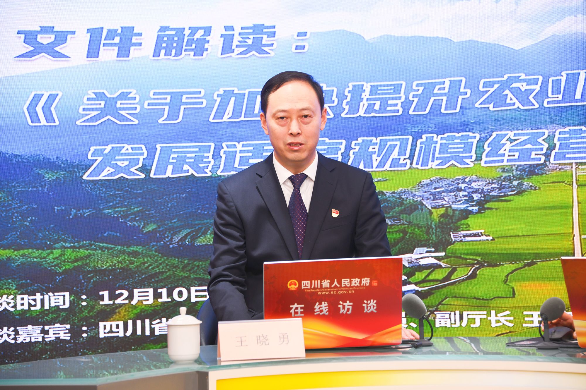 农业社会化服务是推动小农户与现代农业发展有机衔接的关键支撑,也是提升农业生产规模化、集约化、标准化水平,实现农业增效、农民增收的重要路径。按照党中央、国务院和省委、省政府部署要求,《四川省人民政府办公厅关于加快提升农业社会化服务水平发展适度规模经营的指导意见》已于近期印发实施。12月10日,四川省农业农村厅党组成员、副厅长王晓勇来到省政府网站在线访谈直播间,解读《指导意见》并与广大网友进行交流。