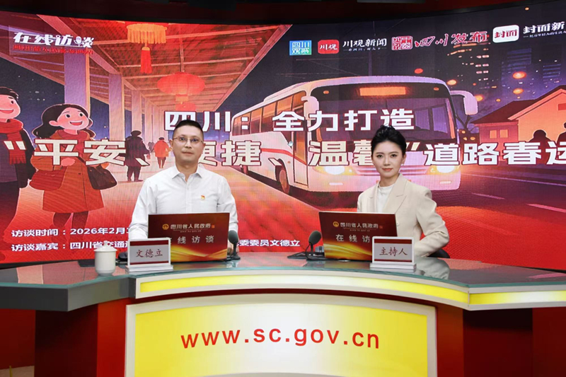 2026年春运是春节假期延长至9天后的第一个春运,自2月2日启动以来,四川道路春运总体呈现“总量略升、需求多元、压力集中”三大鲜明特征。2月11日,省政府网站在线访谈栏目邀请交通运输厅道路运输管理局党委委员文德立走进直播间,围绕“全力打造‘平安、便捷、温馨’道路春运”主题与广大网友进行在线交流。