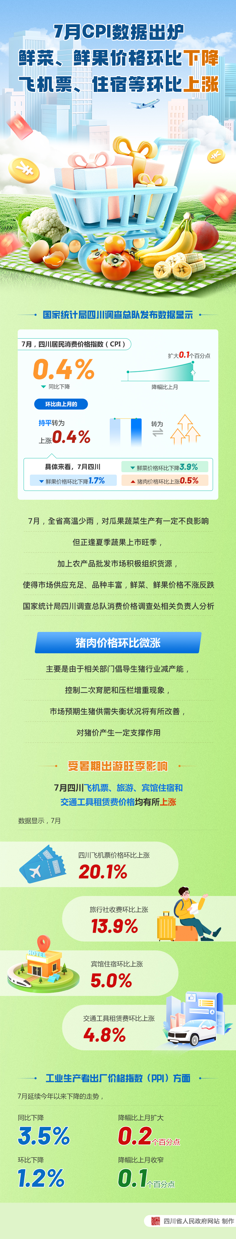 图解:7月CPI数据出炉 鲜菜、鲜果价格环比下降 飞机票、住宿等环比上涨