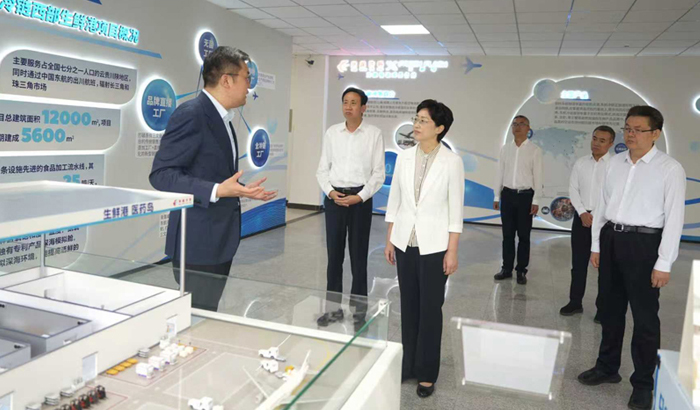 10月10日,省委副书记、省长施小琳在西部生鲜港,调研生鲜进口产业联动发展、三文鱼加工分拨中心建设情况。