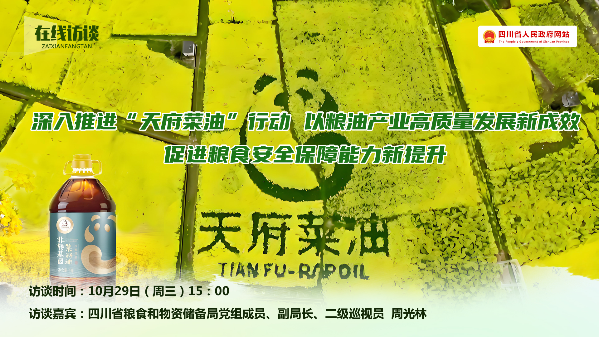 【省粮食和储备局】深入推进“天府菜油”行动,以粮油产业高质量发展新成效,促进粮食安全保障能力新提升