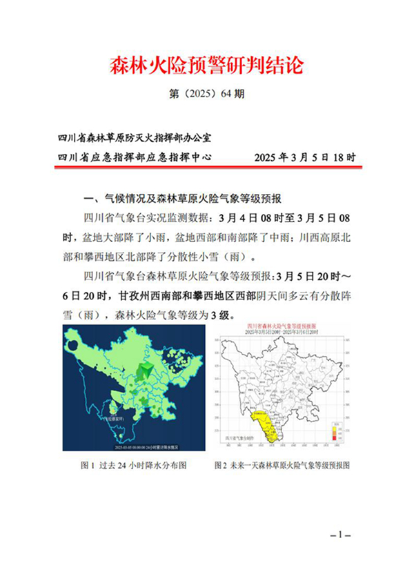 森林火险预警研判结论第(2025)64期