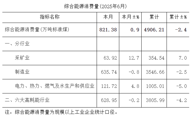 综合能源消费量(2025年6月)