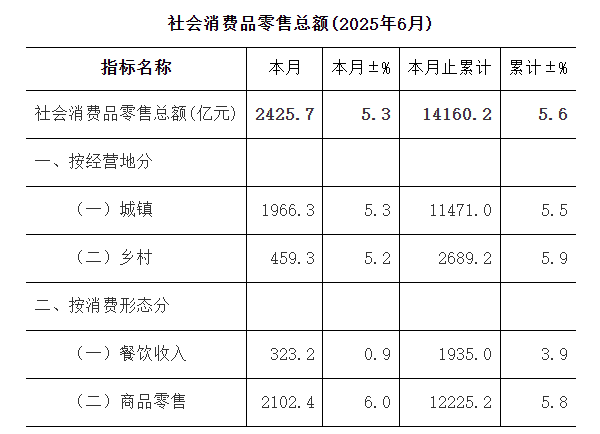 社会消费品零售总额(2025年6月)