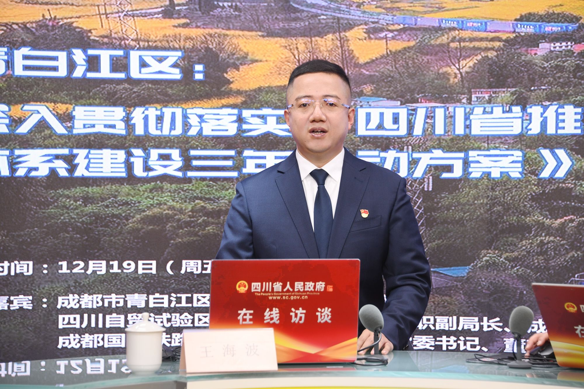 青白江区是成都国际铁路港承载地和中欧班列(成渝)的重要始发地,“十四五”时期,全区地区生产总值连续跨越2个百亿台阶,货物进出口总额连续跨越4个百亿台阶、年均增速高达35.1%。前不久印发实施的《四川省推动中欧班列集结中心枢纽体系建设三年行动方案》又给青白江带来了新机遇。12月19日,成都市青白江区人民政府区长王海波等嘉宾走进省政府网站在线访谈直播间,介绍有关情况并与广大网友在线交流。