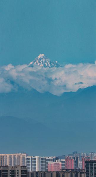 在成都市金牛区遥望四姑娘山幺妹峰(资料图)。雷良金 摄(C视觉)