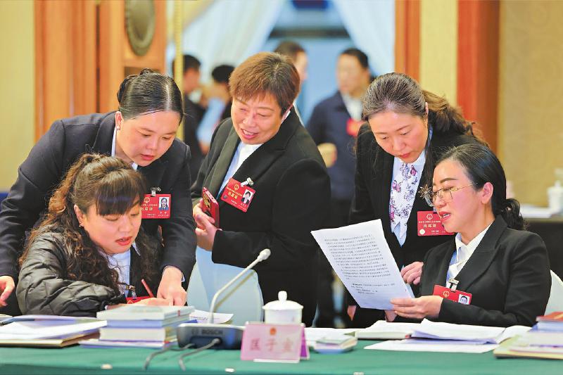 小组会间隙,代表们热议政府工作报告,围绕各自关注的领域进行交流。