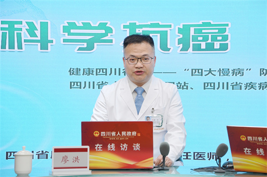 各位网友,大家好,欢迎参加四川省人民政府网站在线访谈栏目。近日,省疾控局等21个部门联合印发了《健康四川行动——“四大慢病”防治行动实施方案(2025-2030年)》(以下简称《实施方案》),明确了未来5年四川加强心脑血管疾病、癌症、慢性呼吸系统疾病、糖尿病这四大类慢性病(简称“四大慢病”)的工作目标、防治策略、主要任务和实施路径。为了让广大网友深入了解“四大慢病”的有关内容。四川省人民政府网站联合四川省疾病预防控制局联合推出健康科普系列专访。“谈癌色变”,是许多老百姓面对癌症时的真实反应。其实,癌症并不是绝症,它与高血压、糖尿病一样,属于可防可治的慢性病。今天我们邀请到四川省肿瘤医院副院长,主任医师,博士生导师 廖洪,欢迎廖教授,和大家一起谈谈癌症预防等相关知识。