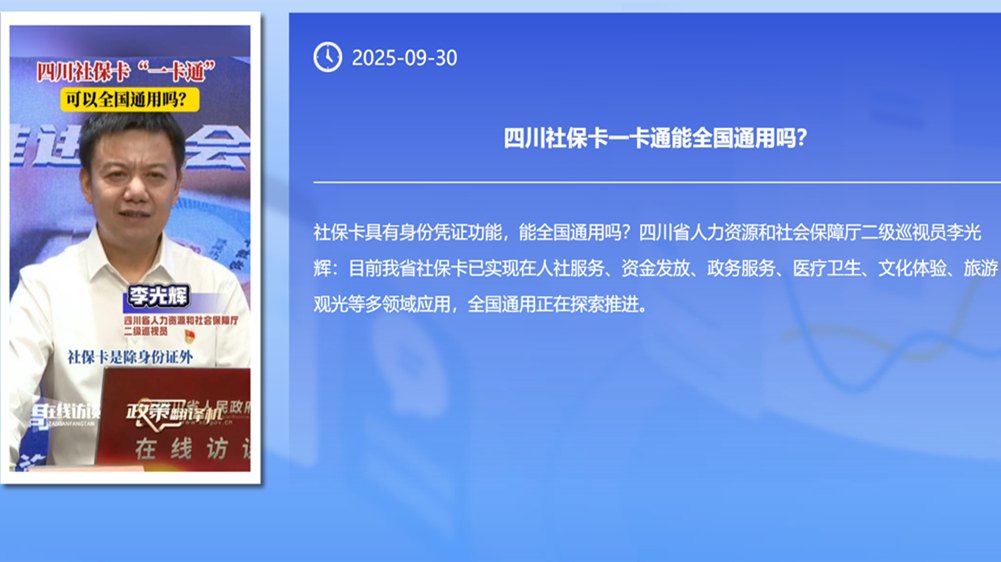 《实施意见》是《四川省社会保障卡一卡通条例》的重要配套政策措施,是落实数字政府重点应用场景建设的具体行动,主要...