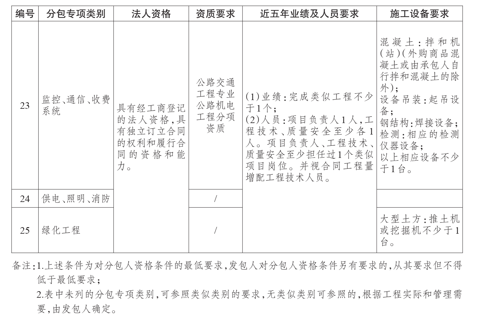 附件:1.1-1四川省公路工程施工分包专业工程类别和资质要求