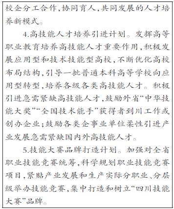 (二)提高劳动者职业技能。实施高技能人才振兴计划和专业技术人才知识更新工程,新建一批高技能人才培训基地和技能大师工作室,推动公共实训基地建设发展。构筑布局合理、定位明确、功能突出、信息互通、协调发展的职业技能实训基地和继续教育基地网络。大规模开展职业技能培训,加快推行工学一体、企业新型学徒制、职业院校现代学徒制等培训模式。探索建立重点产业职业技能培训需求指导目录制度,贯彻落实国家职业资格目录清单管理制度。依托企业、职业院校和各类培训机构,大力开展就业技能培训、岗位技能提升培训和创业培训,健全完善劳动者终身职业培训体系。广泛开展岗位练兵、技术比武、技能竞赛、师徒帮教等活动,打造“四川技能大赛”品牌。(人力资源社会保障厅、省发展改革委等按职责分工负责)