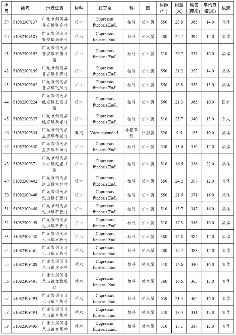 四川省2021年新增一级古树名录(乡村)