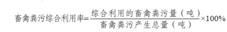指标解释:指行政区域内规模化畜禽养殖场通过还田、沼气、堆肥、培养料等方式综合利用的畜禽粪污量占畜禽粪污产生总量的比例。有关标准按照《畜禽规模养殖污染防治条例》(国务院令第643号)、《畜禽养殖业污染物排放标准》(GB18596-2001)和《畜禽粪便无害化处理技术规范》(GB/T36195-2018)执行。
