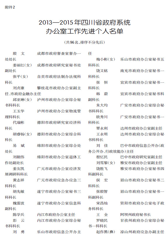 2.2013—2015年四川省政府系统办公室工作先进个人名单