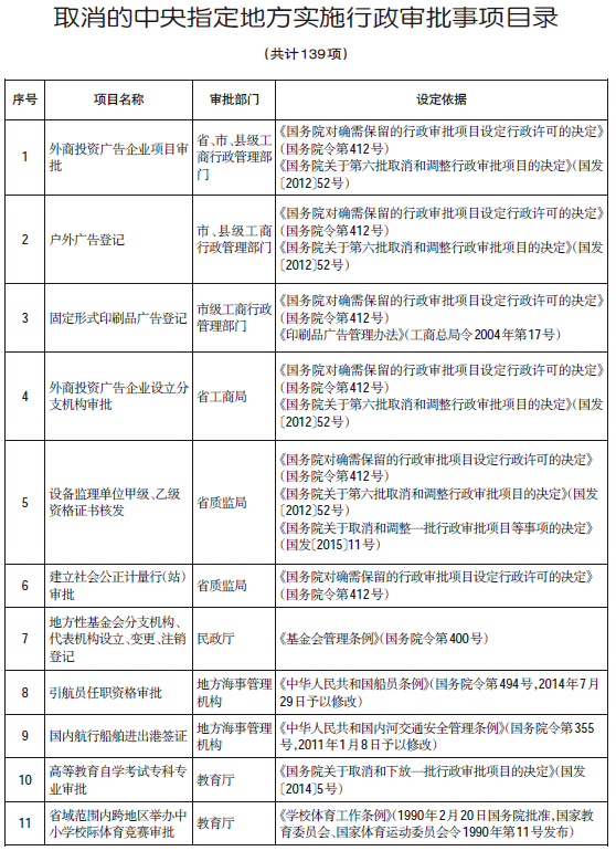 根据《国务院关于第二批取消152项中央指定地方实施行政审批事项的决定》(国发〔2016〕9号)要求,经对应清理,我省实际涉及应取消项目139项,现予印发。