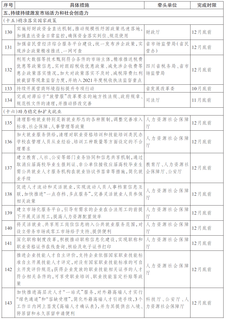 附件:四川省深化“放管服”改革优化营商环境2021年重点任务分工表