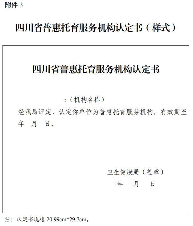 (三)认定公布。公示无异议或异议不成立的,由县级卫生健康主管部门认定为普惠托育服务机构,认定结果(含机构名称、办托地址、收费标准、普惠托位数量等信息)及时向社会公布,并逐级向市级、省级卫生健康主管部门报备。县级卫生健康主管部门认定普惠托育服务机构后,应当向被认定的机构出具加盖本部门印章的认定书。