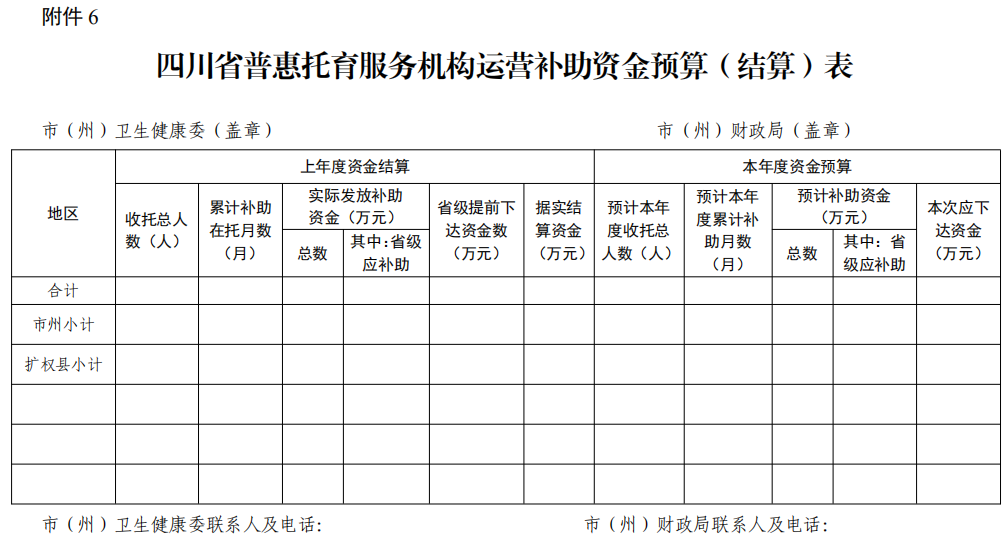 6.四川省普惠托育服务机构运营补助资金预算(结算)表
