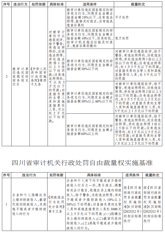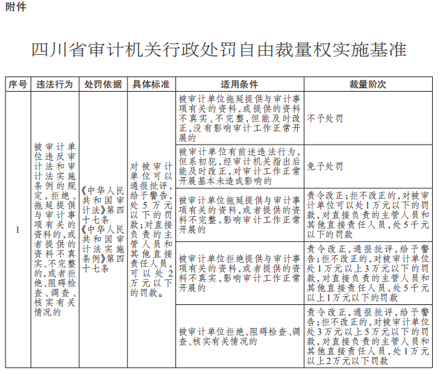 附件:四川省审计机关行政处罚自由裁量权实施基准