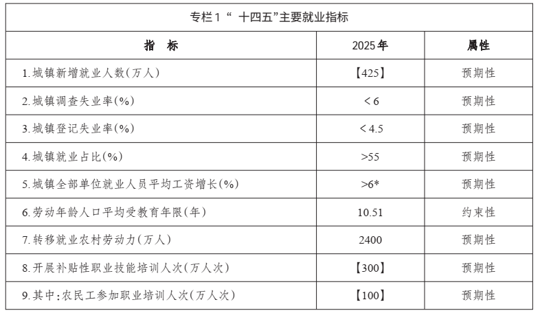 就业规模稳步扩大。城镇新增就业425万人以上,城镇调查失业率控制在6%以内,农村劳动力转移就业规模保持在2400万人左右,确保零就业家庭动态清零。