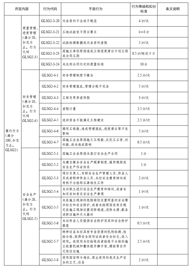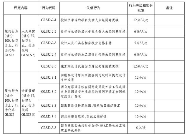 一、从业单位在信用评价年度周期内的其它失信行为扣分按下列标准进行:
