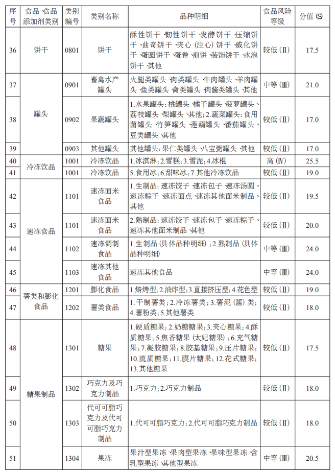 各风险因素具体按照《四川省食品生产企业动态风险因素分值表》(附件2)量化打分。